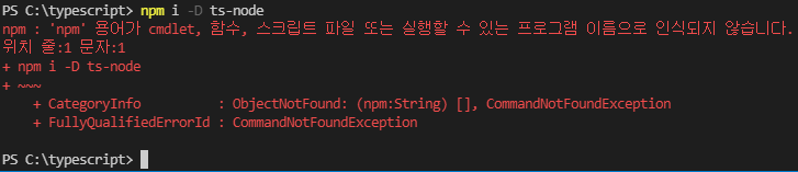 VSCode에서 npm 명령어 입력 시 아래와 같은 오류가 발생했다.