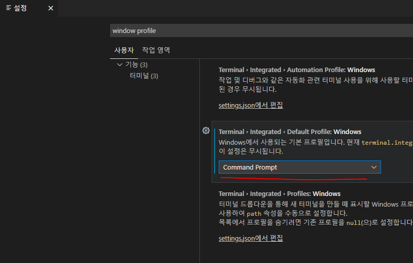 null > Command Prompt로 변경 후 vscode 재시작