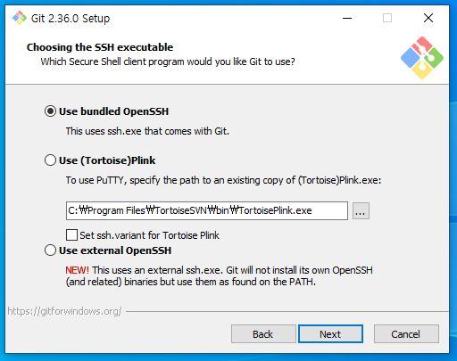 Git Bash뿐만 아니라 다른 곳(CMD 등)에서도 git을 사용할 것이기 때문에 두 번째를 선택한다.