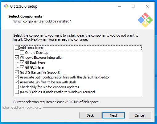 다음, Git Bash 터미널 에뮬레이터 설정은 건드리지 않았다. (Git Bash를 사용하지 않을 것이기 때문에)