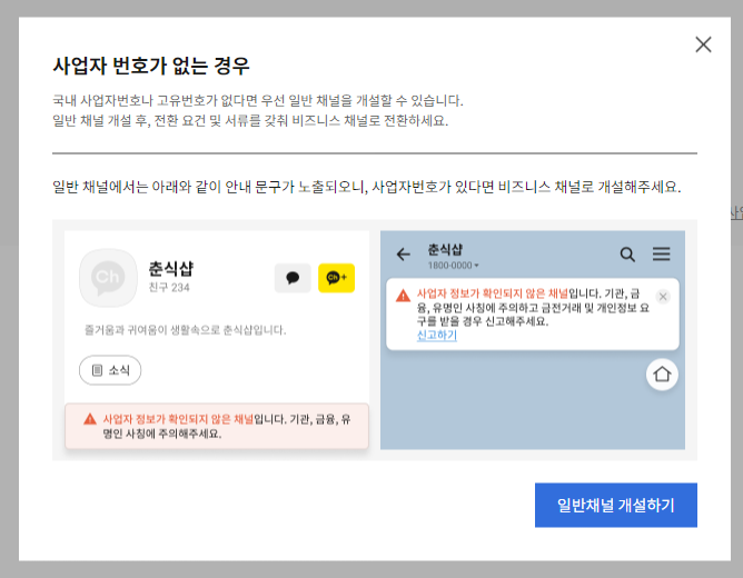1. 카카오 채널을 만든다.(사업자번호가 있으면 좋지만 이번 포스팅에선 사업자번호 없이 진행)