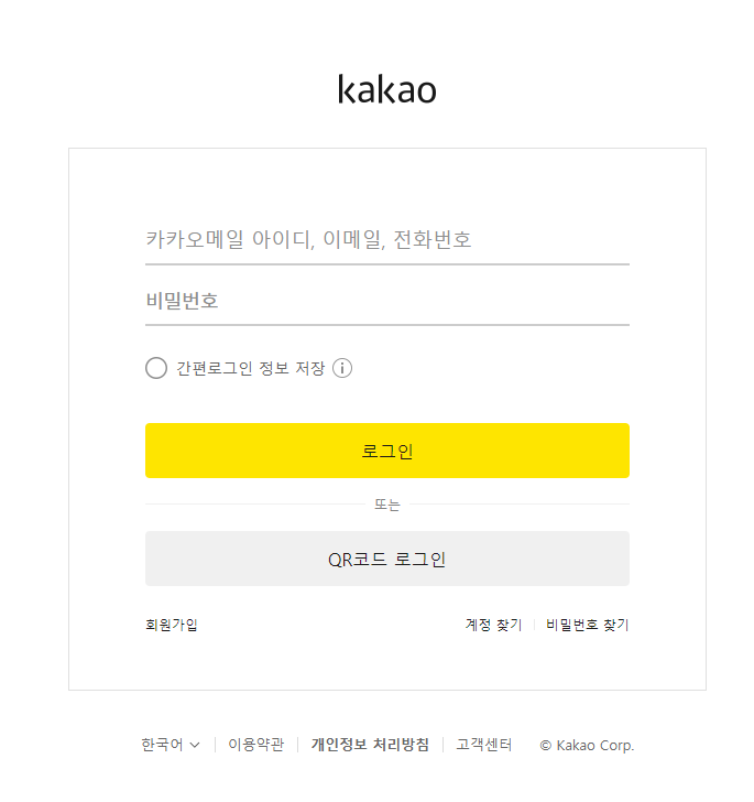 내가 주로 사용하는 카카오톡 계정으로 로그인해도 무방하다.